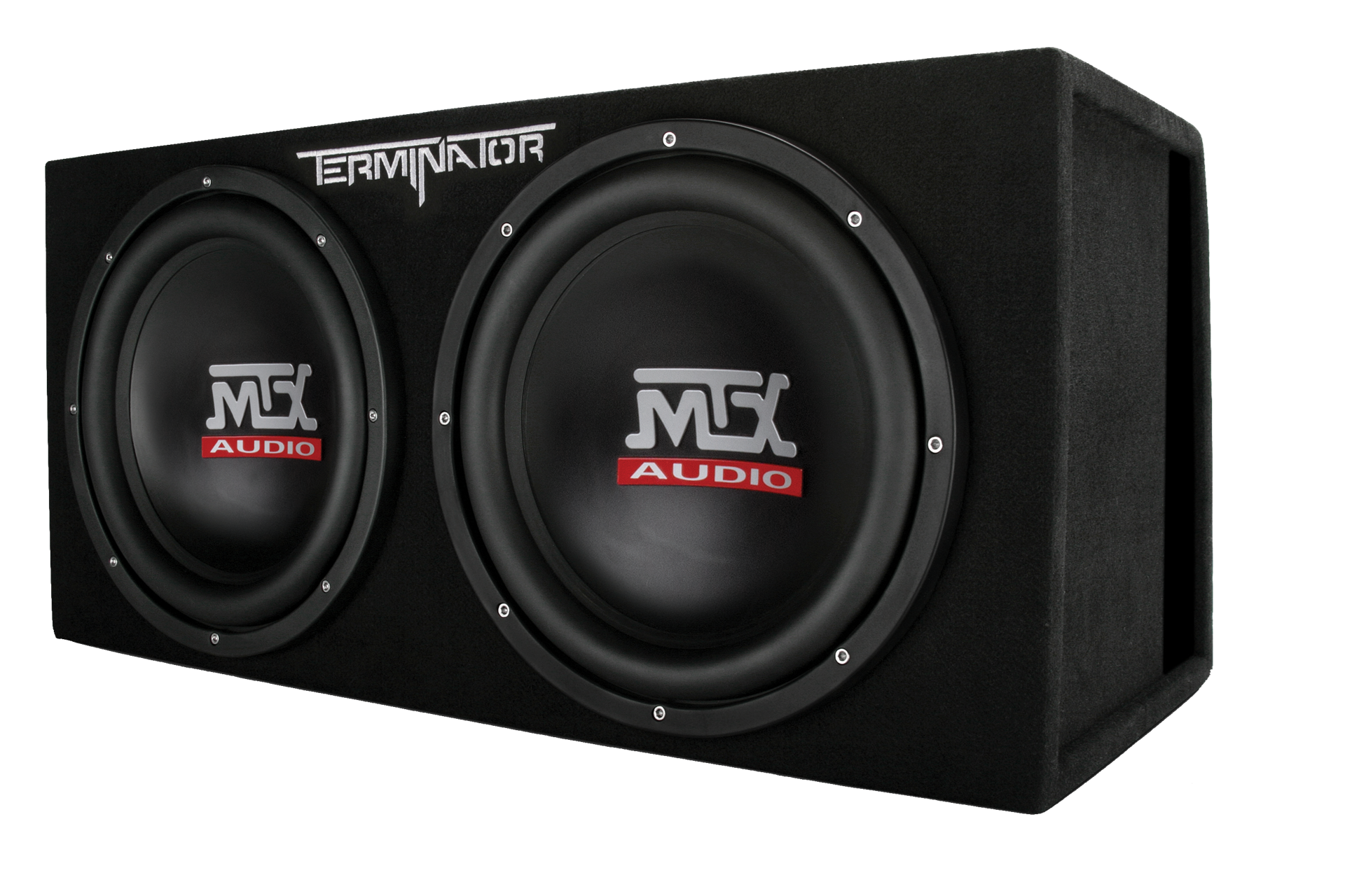 The MTX TNP212DV combines great subwoofer design with perfect enclosure design to deliver bass that far exceeds expectations. The unit is a dual 12" vented enclosure that has a single terminal cup to connect easily to the included amplifier. The Terminator subwoofers used in the enclosure include polypropylene dust-caps that are durable allowing them to survive the rigours of most trunks and are lightweight allowing them to efficiently move using less power. Each subwoofer can handle 500-watts RMS power, resulting in a power level of 1000-watts RMS/2000-watts Peak for the entire enclosure. The subwoofers also incorporate Spider Plateau Venting, which is a mechanical cooling process that allows the subwoofer to continually refresh the air around the voice coil helping to dissipate the heat generated during extended play.